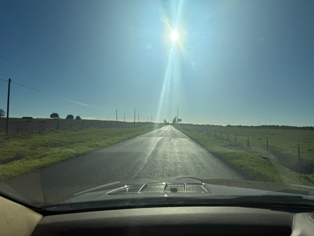 Het laatste deel van de reis begint met een stuk tolweg richting Évora. Het zonnetje straalt en het is een meer dan aangename 15 graden. Alles voelt gelijk een stukje beter aan. Nabij Évora neem ik nog een laatste stop om even lekker in het zonnetje te zitten.