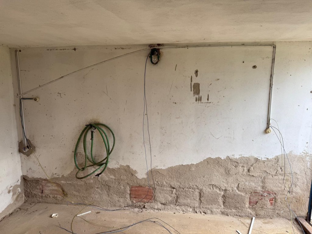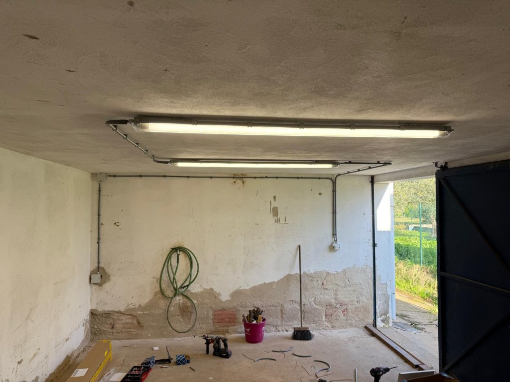 Vandaag gaan we beginnen met de elektra van de werkplaats te vervangen. Het is nu met “troep” aan elkaar gehatseflatst, dat gaan we vanaf de bron, het punt waar de elektra de werkplaats binnenkomt, opnieuw opbouwen. Hoofdzekering van de schuur er af en de demontage kan beginnen, dat kost niet heel veel tijd.