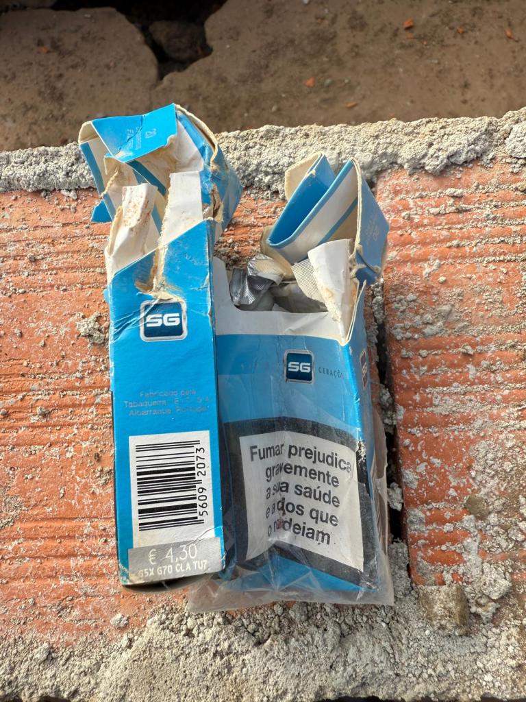 Nick deed nog een leuke ontdekking: in de holle ruimtes van de stenen trof hij een tijdcapsule van het goedkope soort aan: lege pakjes sigaretten zaten in de muur verwerkt. Een pakje kostte € 4,30, dus dat moet al een tijd geleden zijn maar na de invoering van de Euro (sinds 2002). Deze aangebouwde stallen dateren dus van een latere datum dan de rest van de schuur!