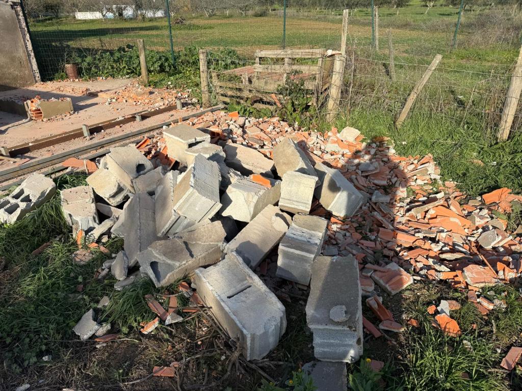 Rond het middaguur zijn is de rechtermuur weg en is een start gemaakt met de sloop van de muur die de nok van het dak droeg. Deze bestaat uit veel groteren stenen van een ander materiaal. Ook hier is het even zoeken wat het beste werkt: uiteindelijk blijkt dat als de sloophamer op de overgang van de ene steen naar de andere wordt ingezet dat dan de steen waar niets meer “voor” zit wordt losgeslagen en zo kun je de steen in zijn geheel verwijderen.