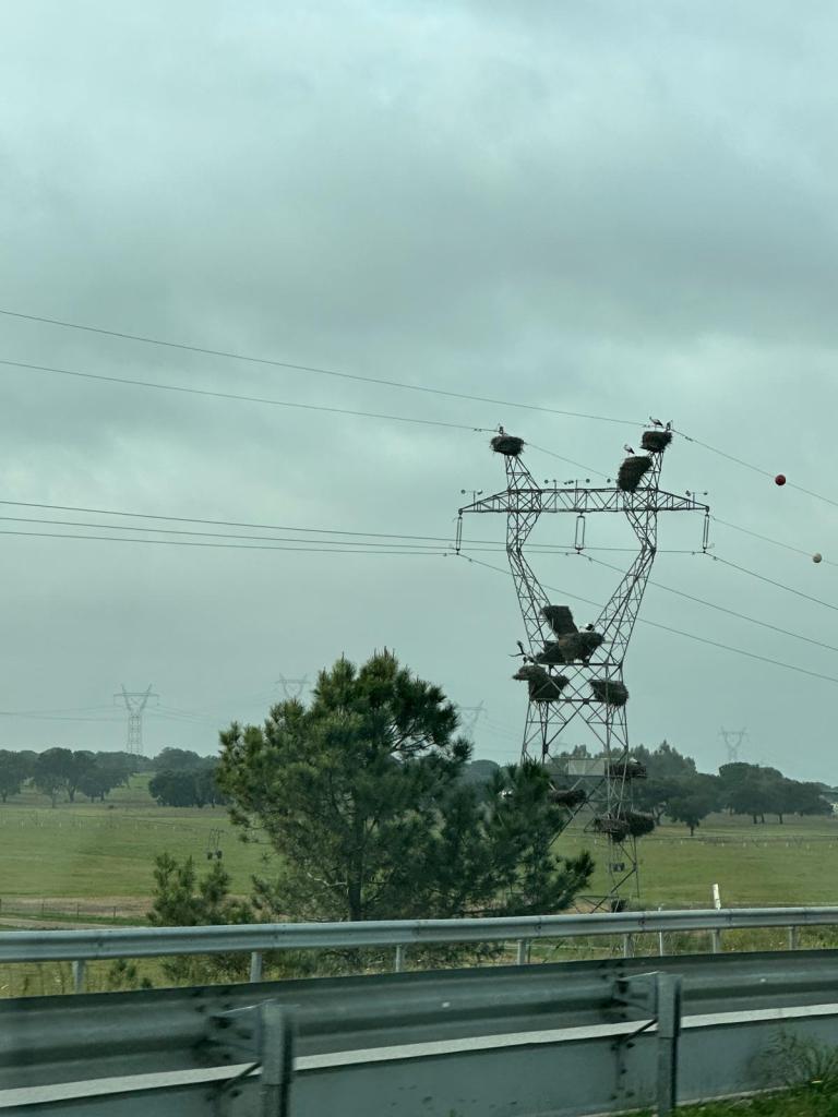 De reis ging binnendoor via Alvito en Odivelas richting de tolweg A2. Wat opvalt onderweg is dat de draagconstructies van de hoogspanningsleidingen door ooievaars als een soort Bijlmerflat gebruikt worden, zie foto. Vanaf de tolweg A2 gaan we in noordwestelijke richting via Grândola, Alcácer do Sal en Setúbal via de oostkant Lissabon in. Bestemming is het grote plein Praça do Comércio in het centrum en van daaruit kijken we naar een parkeergarage.