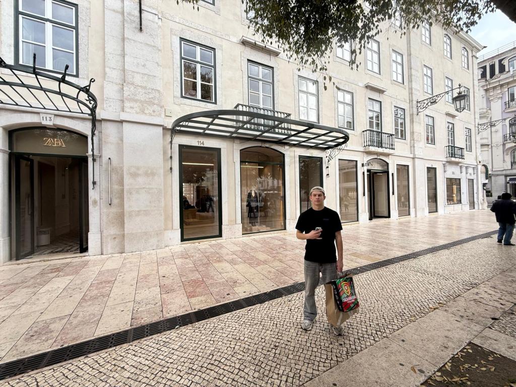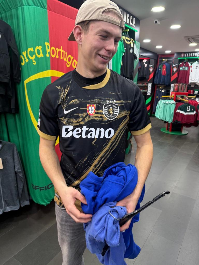 In de Rua Augusta zitten verschillende winkels met merkartikelen zoals horloges en vooral kleding, schoenen en tassen. We scoren nog ergens een kerstcadeau voor vrouwlief/mama: we beschrijven hier niet te veel want ze leest mee! Nick is liefhebber van mooie voetbalshirts, de vorige vakantie hadden we een Benfica-shirt voor hem meegenomen, goede herinnering aan de wedstrijd die hij tegen Benfica had gespeeld in een toernooi eerder in Portugal. Nu wilde hij graag een shirt van Sporting Portugal bemachtigen, hij koos voor het 3e tenue: echt een mooi zwart shirt met gouden accenten. Als dank voor de hulp bij het slopen zeg maar…
