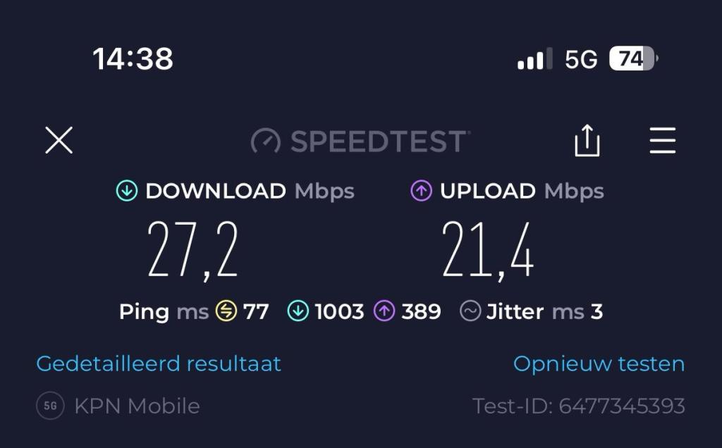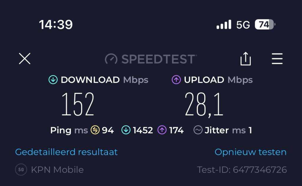 Toen ik weer wakker werd heb ik de snelheden van de verschillende providers eens getest vanuit de relaxstoel in het zonnetje: dit is geen representatieve test omdat ik niet weet of de providers roaming van KPN afknijpen. De verschillen waren echter aanzienlijk! De netwerkselectie stond op “Automatisch” en dan wordt de provider NOS geselecteerd (waarschijnlijk heeft KPN daar een samenwerkingsverband mee). Echter, de snelheid, gemeten via SpeedTest, op 5G was om te huilen: 17,1 Mbit download en 17,3 Mbit upload. Dan deed Vodafone het een stuk beter met 27,2 Mbit versus 21,4 Mbit, maar absolute winnaar van deze huis-tuin-en-keuken-test is dan toch echt MEO met 152 Mbit download en 28,1 Mbit upload! Dat zijn toch forse verschillen! Ik ben van plan om test-SIMs te halen van de 3 providers zodat ik ze direct op het eigen netwerk kan testen. Morgen krijg ik trouwens de Vodafone mobiele router dus dan kan ik die snelheid ook testen. Voor de roamingfunctie voor mobiel internet op de telefoon stel ik vooralsnog MEO in!