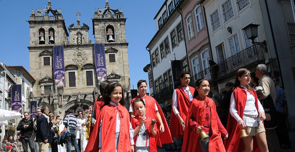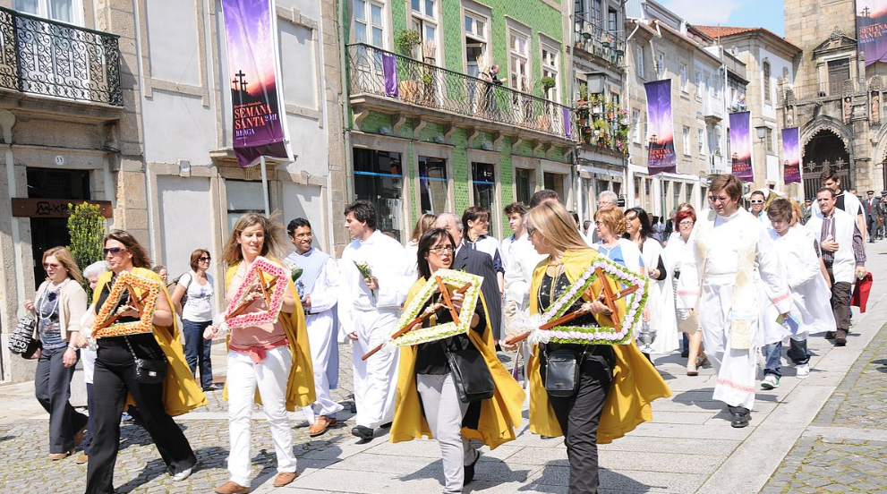 Wat in bijna alle steden gebeurt, zijn de processies en theatrale voorstellingen van de Passie van de Christus. De meest curieuze processie is waarschijnlijk die met de Maagd Maria op een ezel, die plaatsvindt in Braga, in het noorden van het land. Het beeldje van de Maagd gaat door de hele stad op de rug van een ezel.