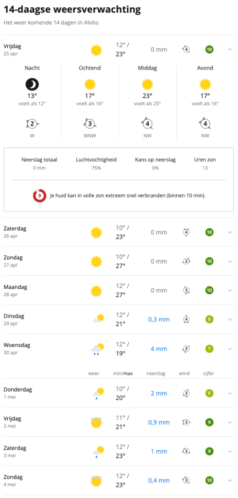We gaan er van uit dat deze trend zich voortzet en dat we eind april gewoon heerlijk weer hebben!