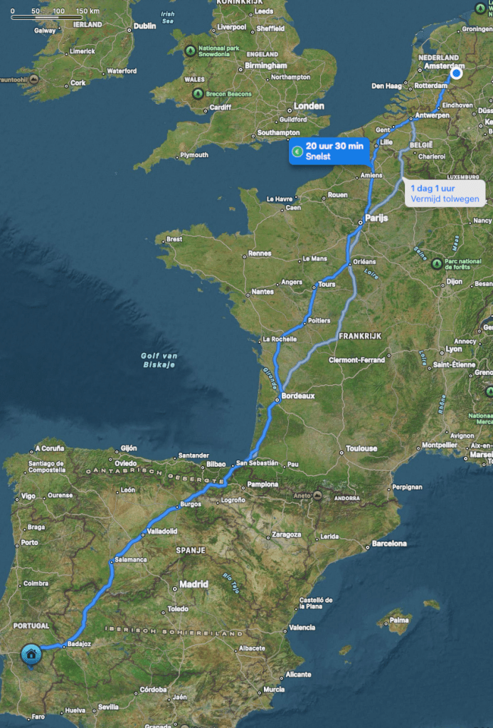 De planning is om vrijdagavond 23 mei na de files te gaan rijden. In de eerste 2 ritten naar Portugal heb ik 2 keer overdag vast gestaan in Parijs en dat is gewoon geen pretje. Op de terugreis kwamen we in de nacht door Parijs en dan kun je gewoon doorrijden. Idee is nu om de planning zodanig te maken dat we ook op de heenreis in de nacht door Parijs kunnen rijden.
