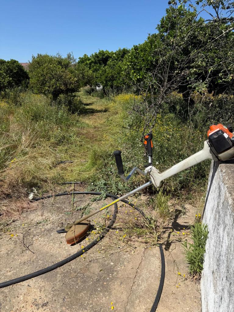 Om de komende dagen het systeem goed te kunnen testen wil ik eerst eens kijken of het werkt zoals bedoeld is. Omdat ik van de afgelopen keren door het metershoge onkruid banjeren in korte broek allemaal uitslag op mijn benen heb dacht ik gelijk maar eens even “het pad te effenen”… Gewapend met de bosmaaier baande ik me een weg tussen de fruitbomen naar de pompinstallatie: na een klein half uurtje kwam ik daar aan en kon ik de installatie voorprogrammeren. Eigenlijk heel simpel: