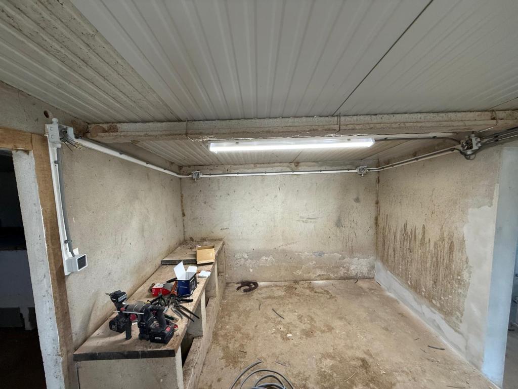 Het kwik is inmiddels opgelopen naar 34 gradenDe derde ruimte wordt een opslagruimte voor de paardenspullen van vrouwlief. Het is de meest donkere ruimte met een heel klein raampje, het mag geen naam hebben. Om daar te komen moet eerst de elektra doorgetrokken worden. Dat hebben we vanmiddag voor elkaar gemaakt door in de 2e ruimte de elektra van de linkerkant naar de rechterkant te trekken. Dat hebben we gedaan via de achterwand: daar komt straks een werkbank dus op die hoogte ook gelijk 2 aftakpunten gemaakt (links en rechts van de werkbank) om later wandcontactdozen te plaatsen. De focus is nu eerst dat het licht het gaat doen!