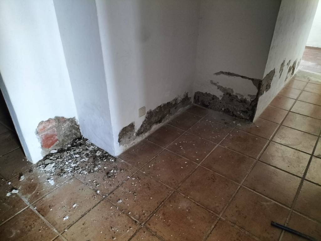 Iedere traditionele Portugese woning heeft zo’n beetje last van optrekkend vocht langs de muren. Bij ons is dat vooral het geval in het “oude” gedeelte. De woning is in fases uitgebreid en de laatste uitbreidingen hebben hier (nog) geen last van. In de traditionele bouw van de woningen in Portugal worden geen koudebruggen, vochtwering en dergelijke toegepast dus optrekkend vocht langs de muren komt vaak voor. We gaan dat op 2 manieren aanpakken: