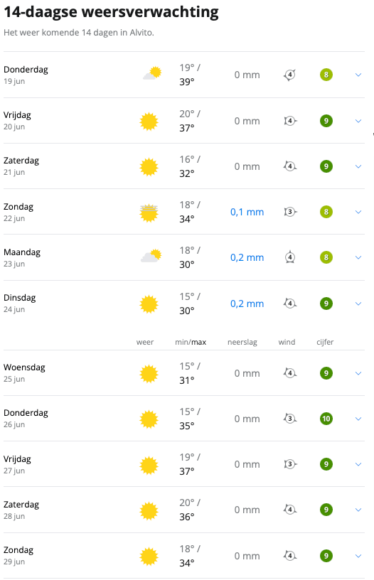 Pedro Timofeeff pakt de komende week weer uit met het weer in Alvito! De hele week temperaturen van 30 graden of meer!