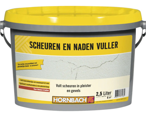 Qua voorbereiding van de muur houden we het dan maar in de Hornbach-familie, dat is dan 1 keer rijden en alles meenemen! Gemak dient de mens! Voor het wegwerken van scheuren, naden en beschadigingen in de muur gaan we de Scheuren en Naden vuller van Hornbach gebruiken.