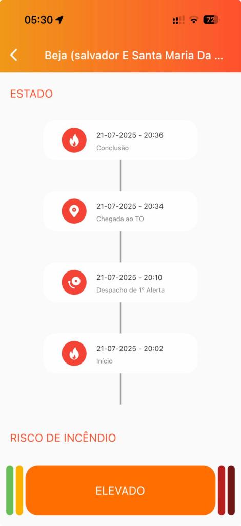 Het betreft hier een melding van een brand in de wijk Santa Maria da Feira in Beja waar op maandag om 20:02 de eerste melding is gedaan, om 20:10 de eerste melding op logos.pt is gedaan, om 20:34 kwam men aan op de plaats waar de brand zou zijn en om 20:36 is de melding afgedaan.