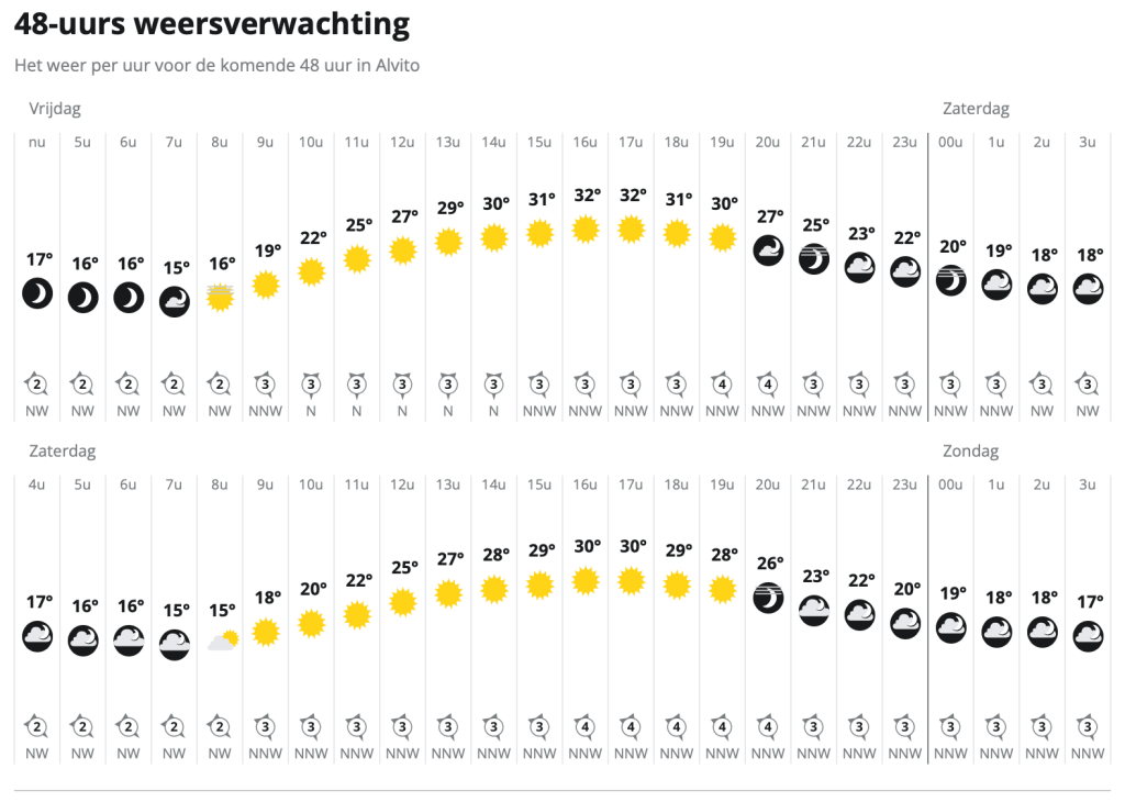 Overigens blijft het weer voor de komende 2 weken tot eind september hetzelfde: volop zon en temperaturen tussen de 28 en 34 graden…