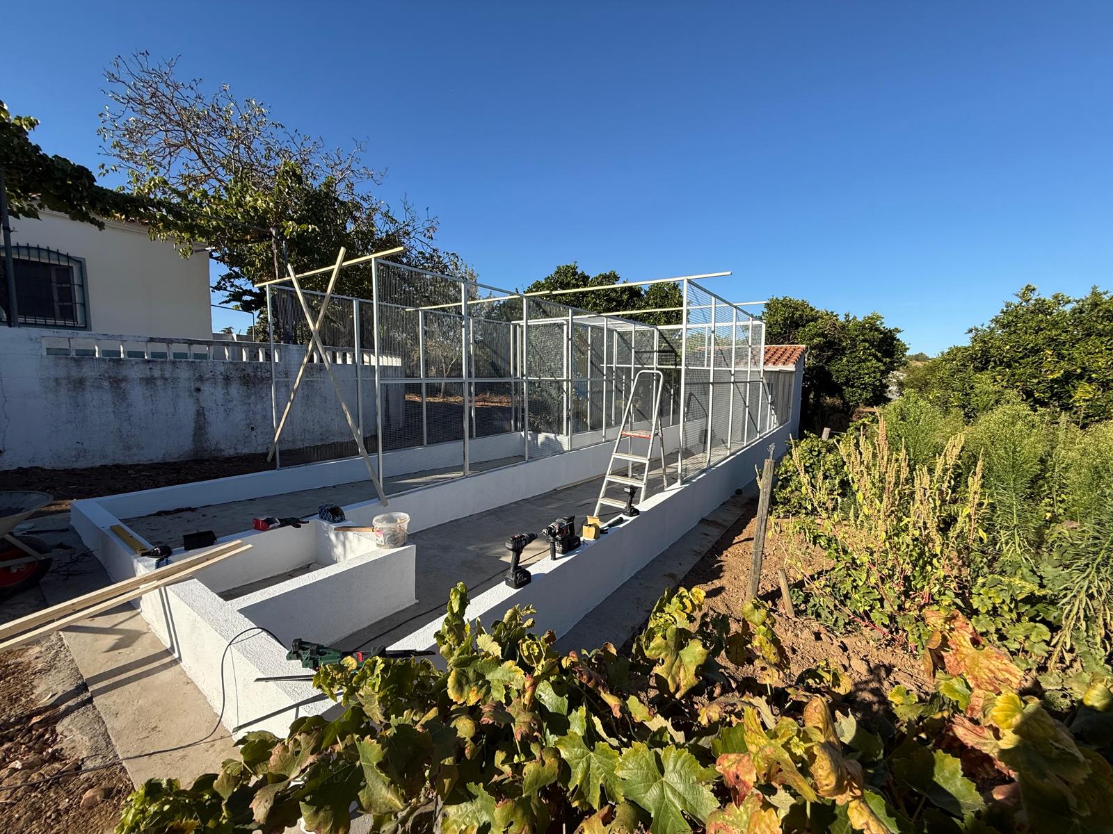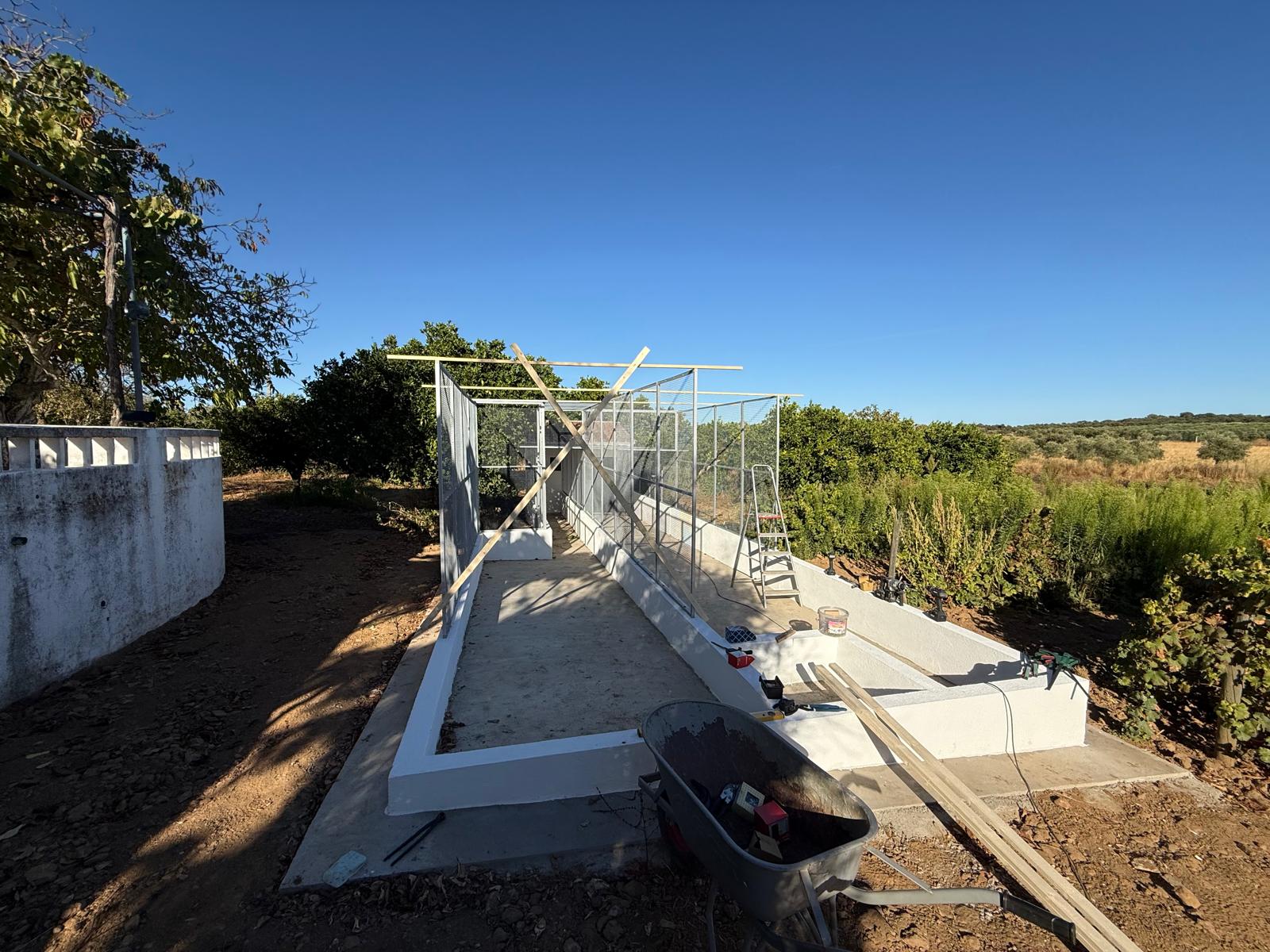 Na een goede nachtrust maar wel met stramme spiertjes beginnen we aan de één na laatste dag van deze trip. Doel is zo ver als mogelijk te komen met de volière en het schilderwerk van de stallen in de 2 dagen die nog resteren. Vandaag is eerst de volière aan de beurt: het wordt weer 30 graden dus we zien hoe ver we komen voordat we de stallen induiken…