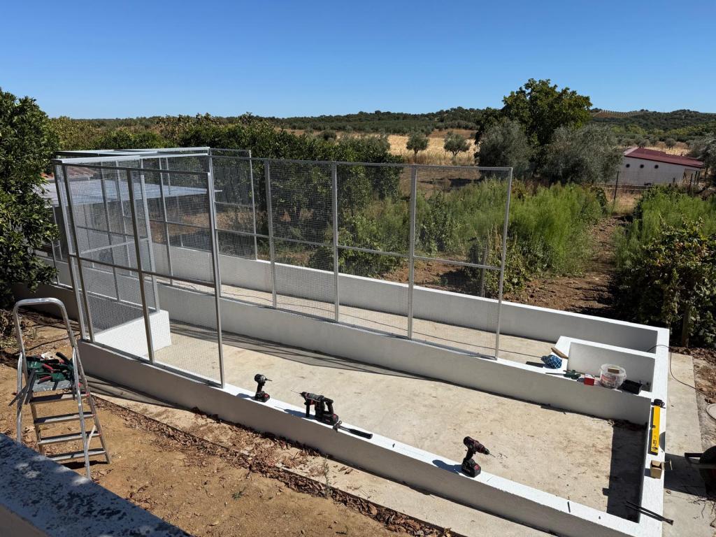 Met het plaatsen van dit passtuk staat er, compleet waterpas, een stabiele basis van waaruit we verder kunnen werken. De standaard volièredelen kunnen hier tegenaan geplaatst worden en aan het einde van de volière moet dan de sluis op maat worden gemaakt en de laatste passtukken er tussen om het 1 geheel te maken.