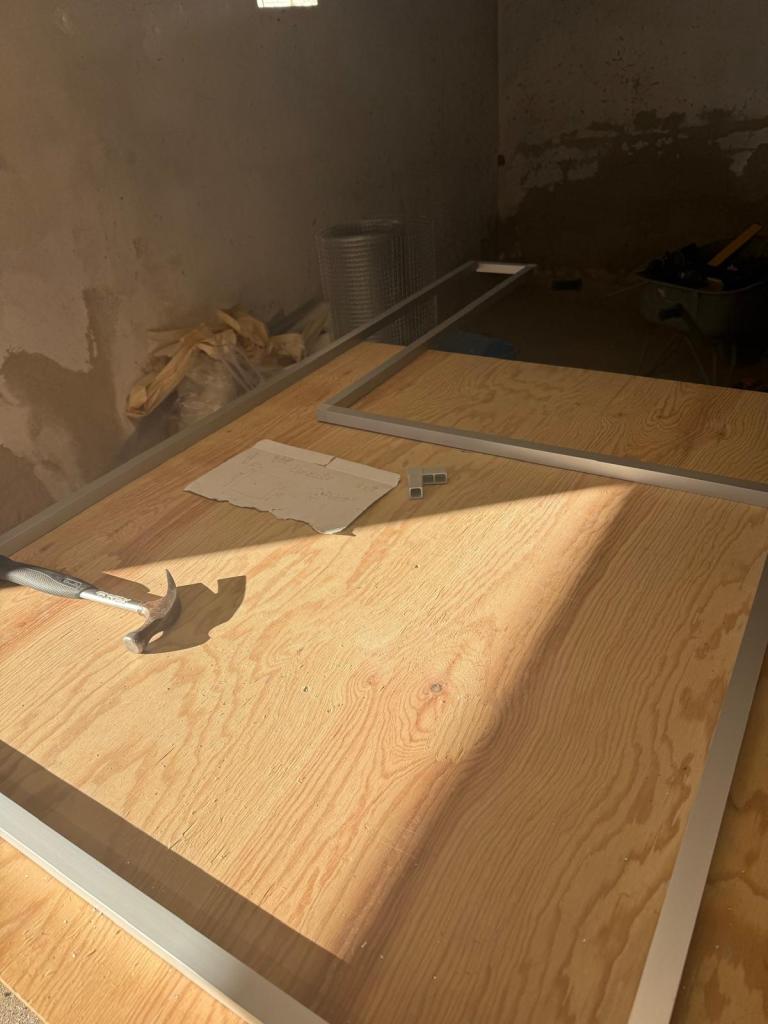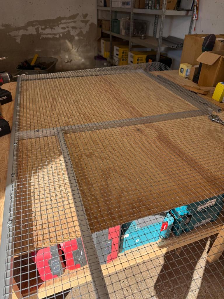 Nog 1 passtuk voor het dak moet gemaakt worden voordat de standaard volièredelen geplaatst kunnen worden. Het gaat om het passtuk daar waar het smalle gedeelte van de volière van de tropenvogels overgaat in het brede gedeelte.