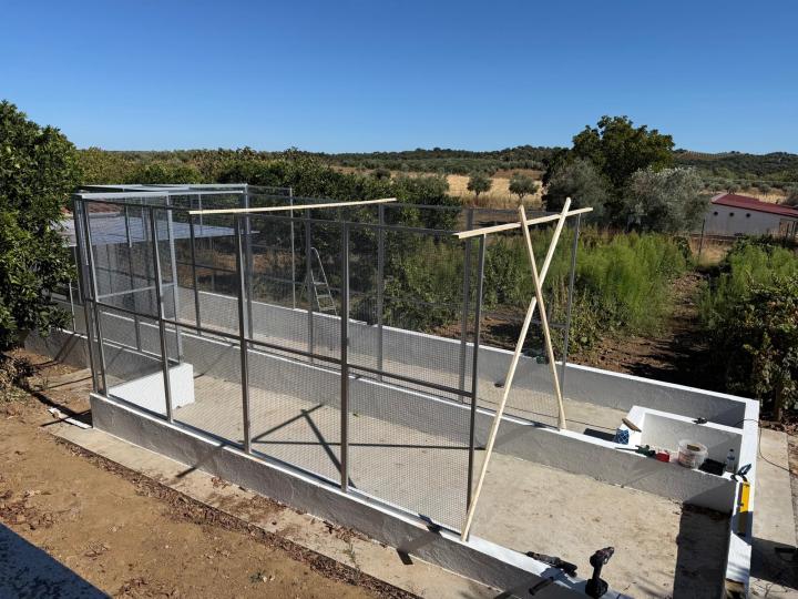 Voor de volière zullen we in Nederland alle nog te plaatsen volièredelen zoveel mogelijk voorbereiden. Ter plekke hoeven we dan alleen alles te plaatsen en de finishing touch toe te voegen. Schatting is nog 3 tot 4 dagen werk op locatie (als alles goed voorbereid is).