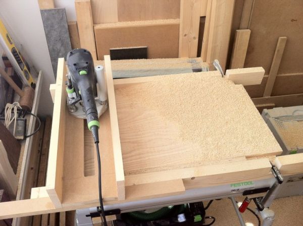 Zie hierboven een voorbeeld van een freesmal. Een dergelijke constructie ga ik ook maken voor wat er nodig is om de freessleuf goed in het hout te krijgen. We gaan even puzzelen…