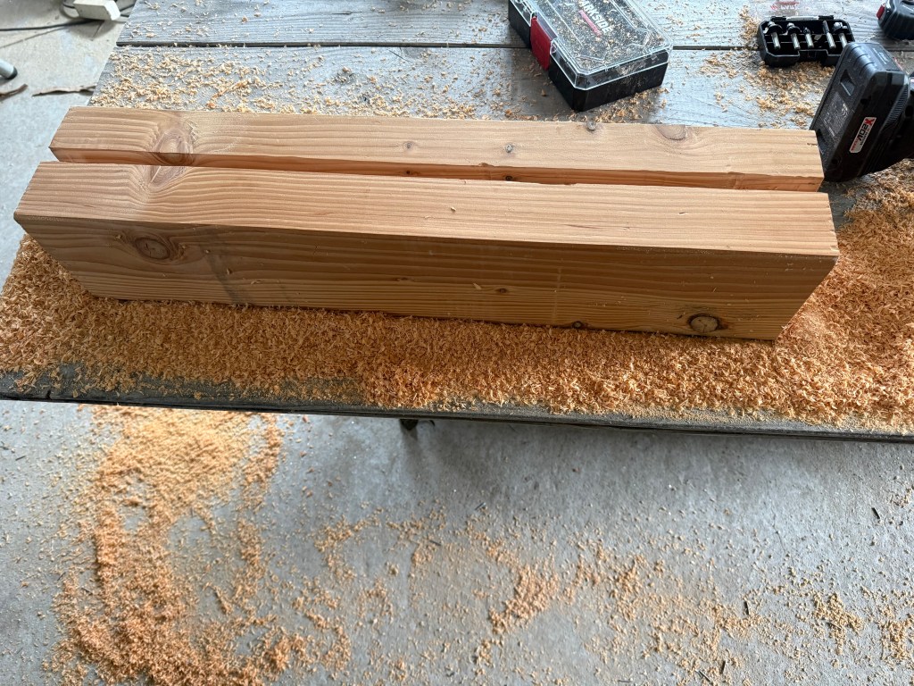 Voordat het hout opgehaald wordt gaan we eerst nog even “oefenen” op een stuk hout dat we nog hebben liggen. Een houtfrees is een apparaat met veel instelmogelijkheden dus het is goed om even te proberen. Met 8 staldeuren waar per deur 4 staanders en liggers gefreesd moeten worden zijn dat 32 delen te freezen! Dat is nogal een werkje, dus het is goed even het apparaat te leren kennen en de beste manier om het freezen zelf aan te pakken. De planken zullen voor ca. 1 cm verzonken worden in de balken dus we hebben een groef van minimaal 10mm diepte nodig.