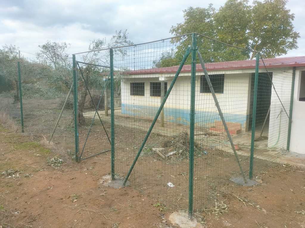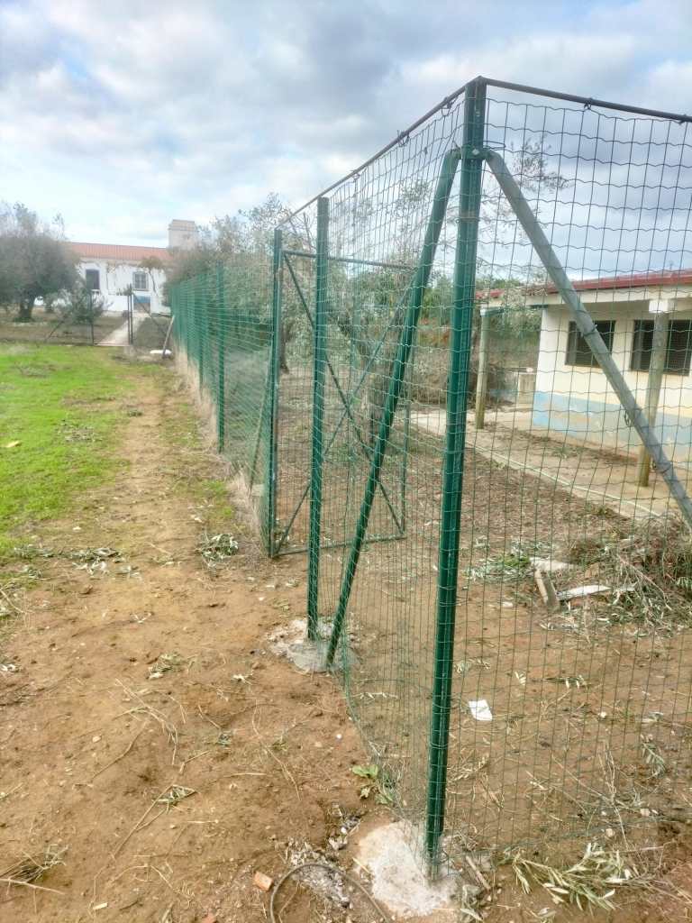 Naast het straatwerk is het hekwerk netjes ingekort en de staanders in het beton gegoten, hekwerken er op gespannen en poort erin geplaatst. Deze ruimte is nu klaar voor het plaatsen van het kleinvee, nu nog voornamelijk de kippen. De geitjes zijn inmiddels herplaatst en we verwachten binnenkort voor de varkens ook een adres te hebben.