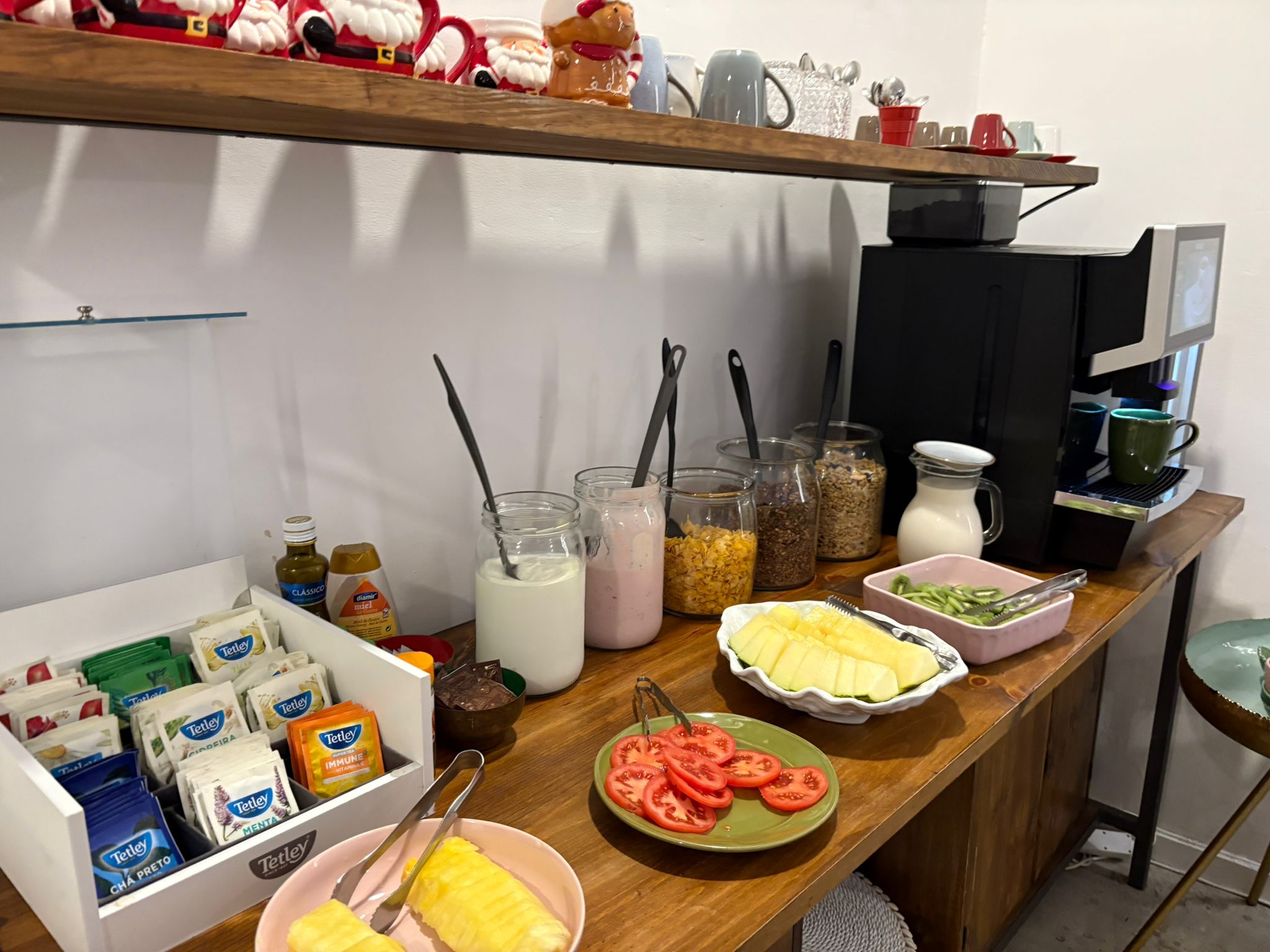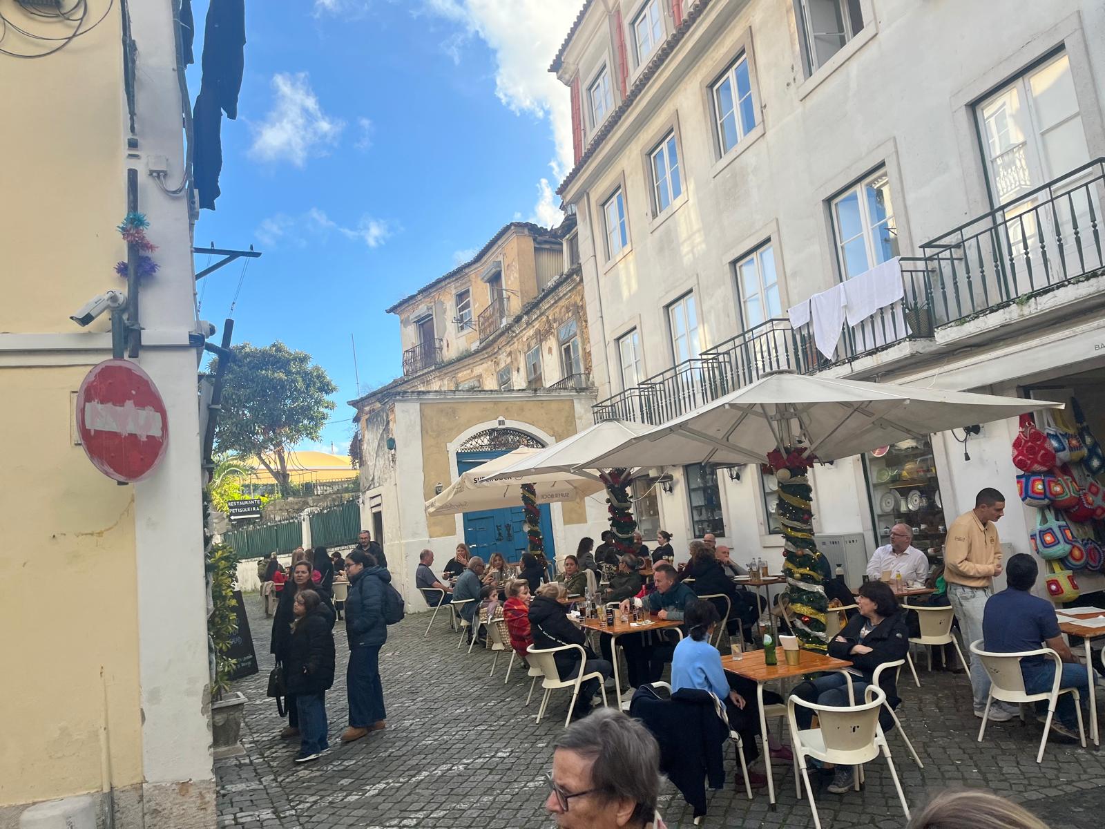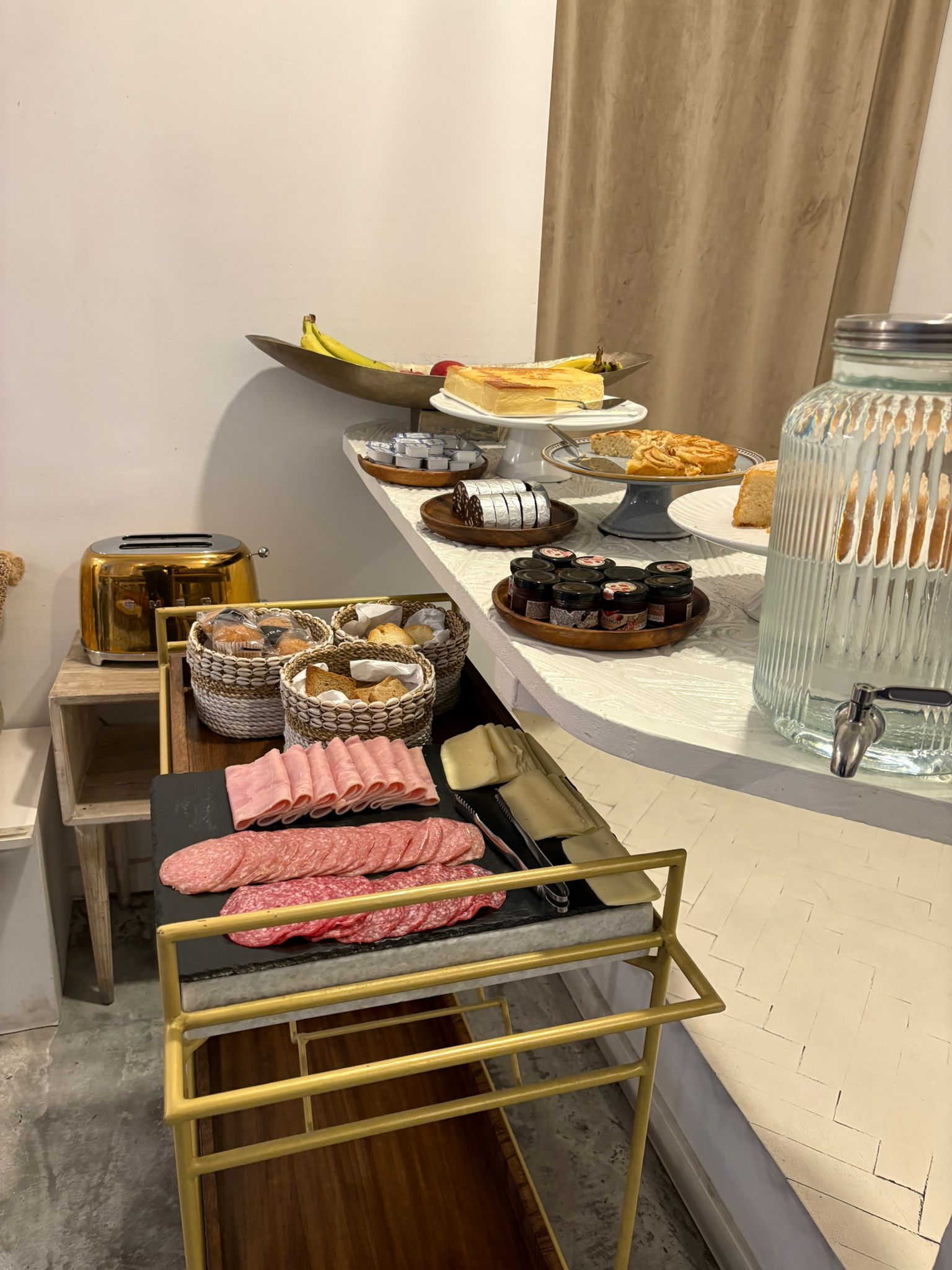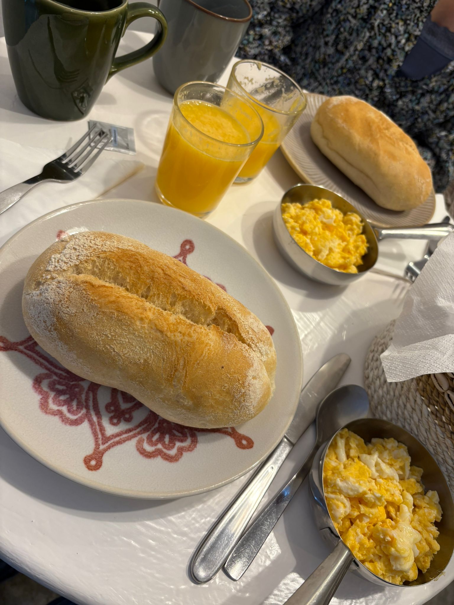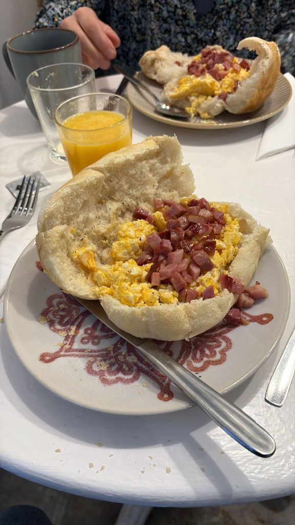 De dames laten zich in Hotel Garam in Lissabon lekker fêteren met een prima ontbijtje! En dat terwijl ik het in Alvito moet doen met een paar droge crackers met hagelslag…