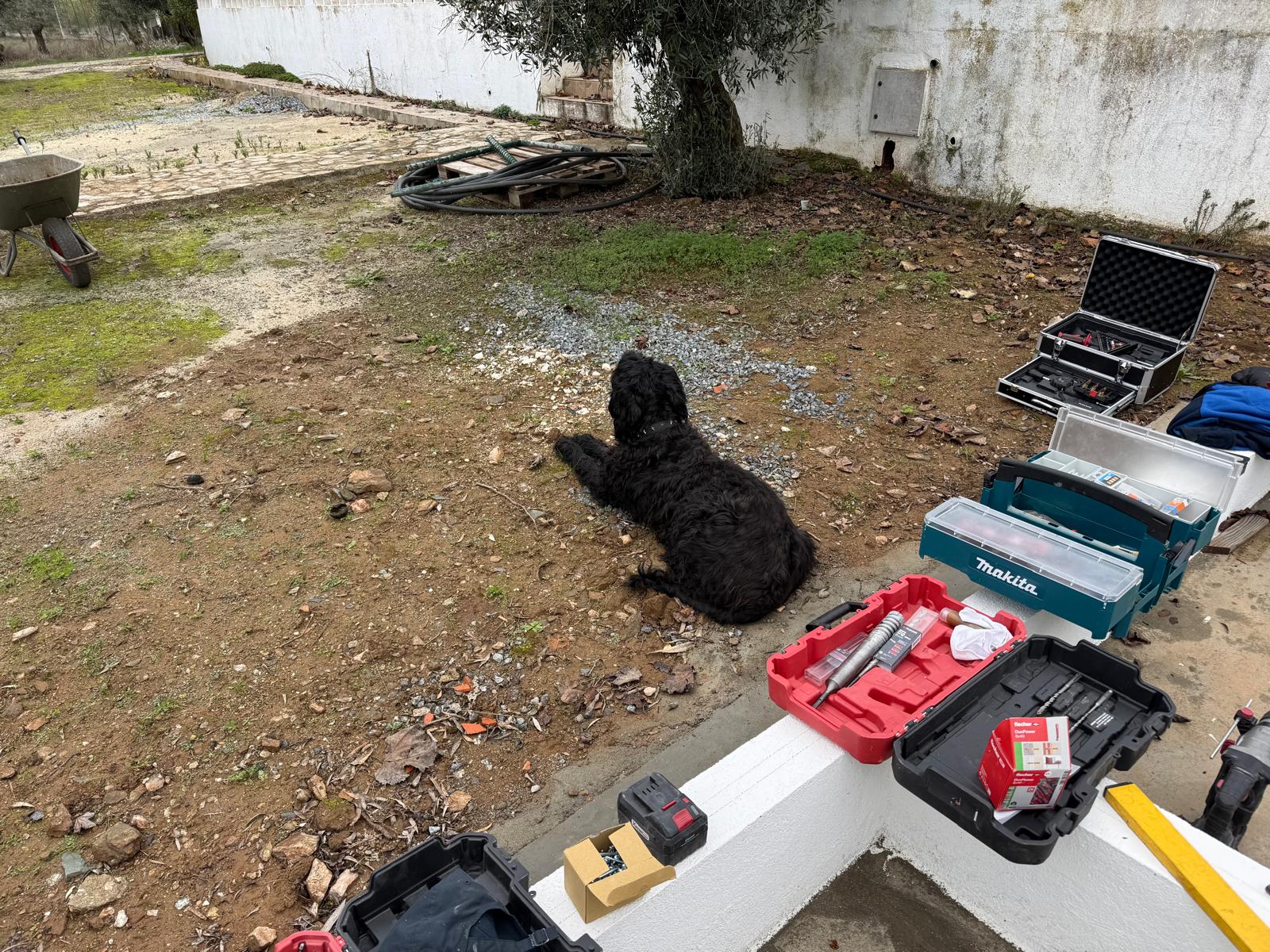 De 2e dag: na een goede nachtrust waren we klaar om aan de slag te gaan. De dag begint met een wandeling met de hond rond de olijven plantages en daarna aan het werk met de volière. ’s Middags natuurlijk even Max kijken terwijl de dames als losgeslagen VVV-gidsen alle bezienswaardigheden van Lissabon in 1 dag proberen te proppen. Gelukkig hebben we de foto’s nog!
