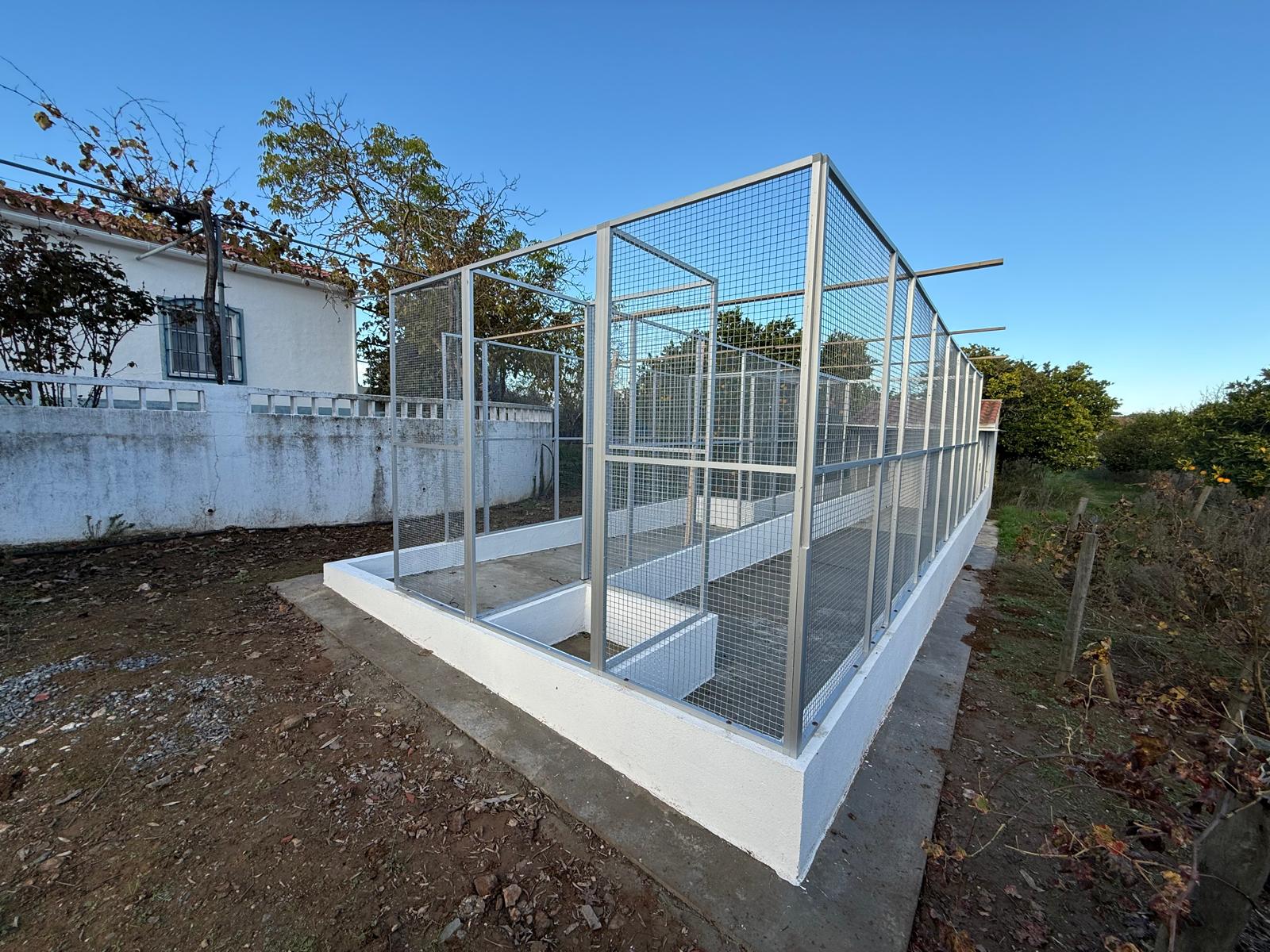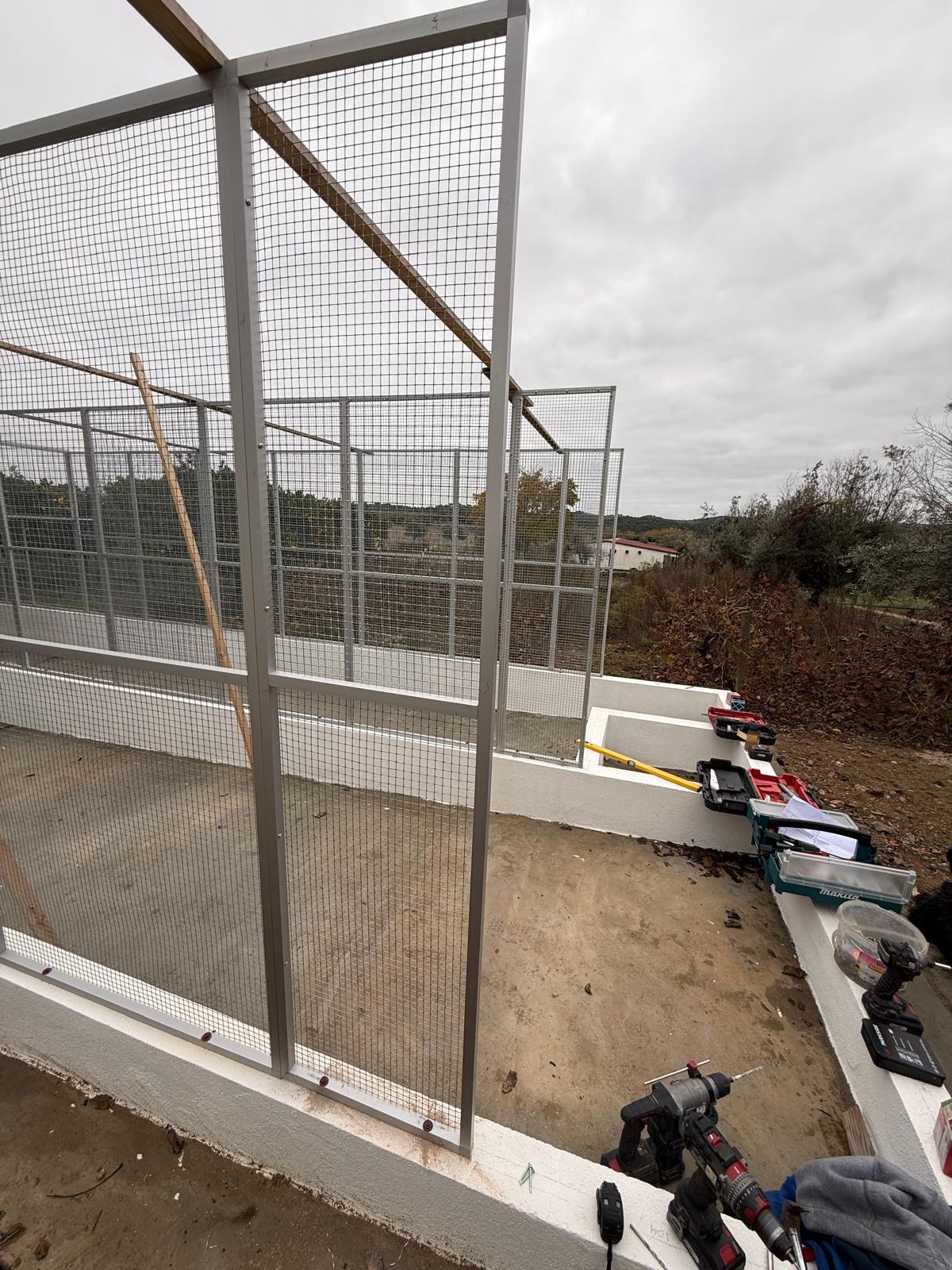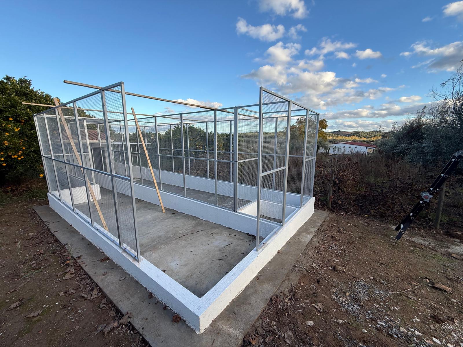 In Alvito gaan we lekker verder met de verdere aanleg van de volière. Het voorste gedeelte inclusief de toegangssluis wordt geplaatst en dan blijkt dat ik 2 delen compleet vergeten ben te maken. Ik ben ook door het materiaal heen dus zal in Nederland nieuwe aluminium kokers moeten gaan halen.