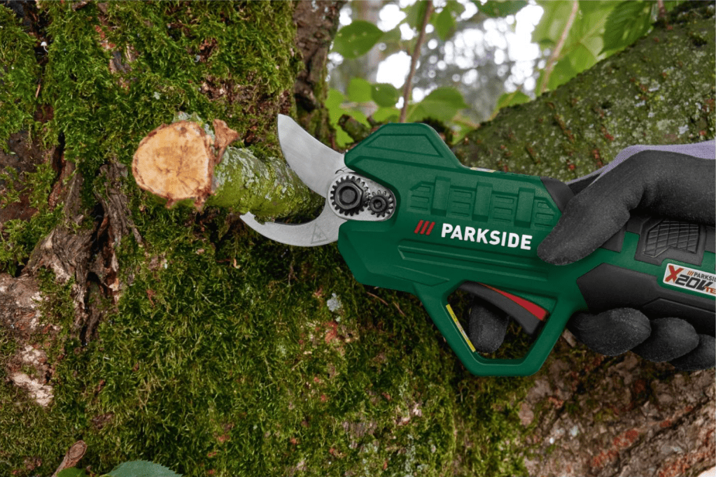 We laten de dames met de poezelige handjes en de gemanicuurde nageltjes natuurlijk niet zo maar “los” op de druivenstokken. Goed gereedschap is het halve werk, dus getooid met een accu-snoeischaar van Parkside gingen de dames de “natuur” te lijf!