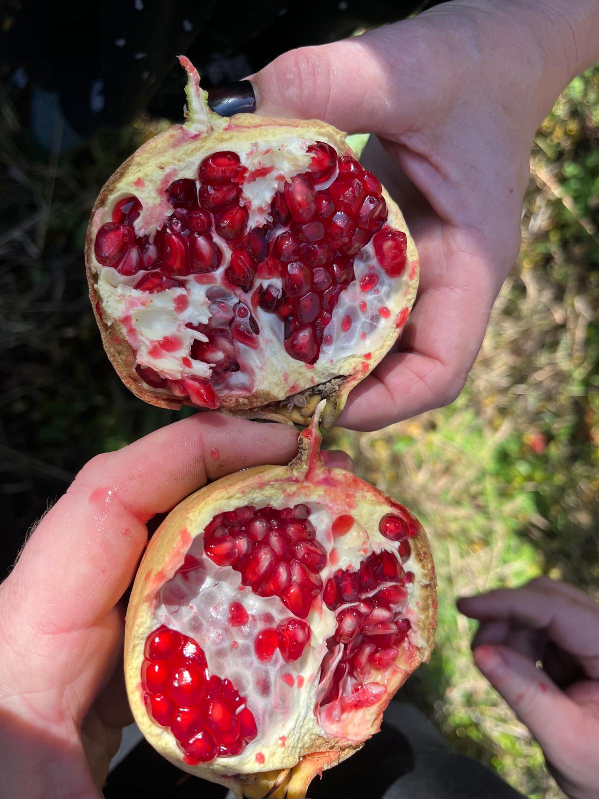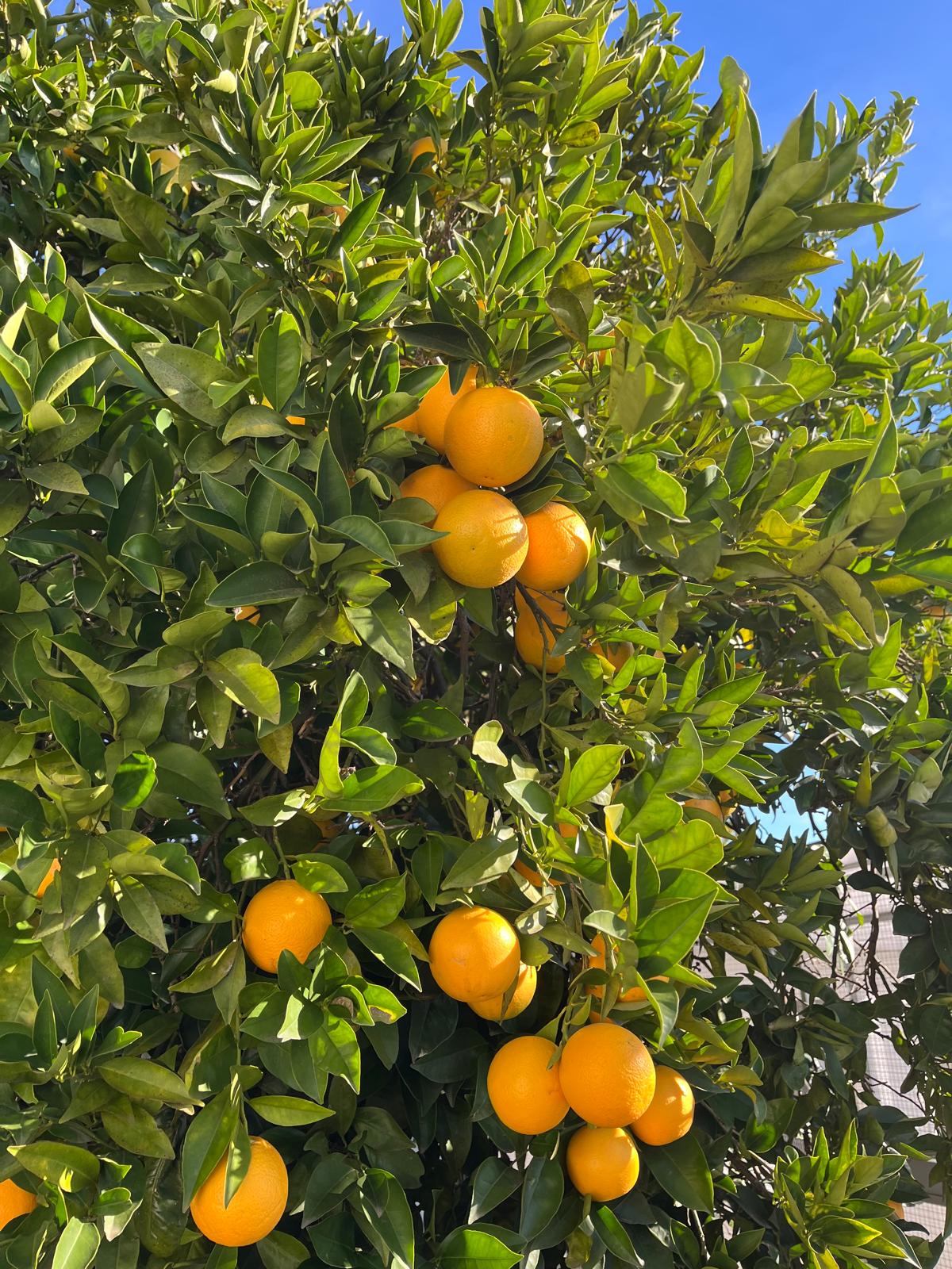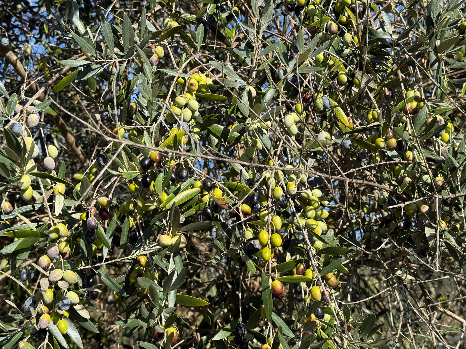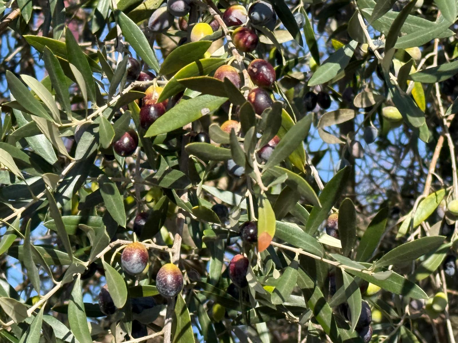 In de ochtend lopen we tussen de fruitbomen door om even te kijken hoe alles er bij staat. De sinaasappelbomen zitten vol met sinaasappels waarvan een klein deel rijp is en de rest daar tegenaan zit. Hetzelfde geldt voor een paar mandarijnbomen. De granaatappels zijn over hun hoogtepunt heen maar hebben hier en daar nog een goede vrucht er in hangen. De vijgenbomen zijn helemaal leeg. De olijfbomen in deze hoek staan nog helemaal vol!