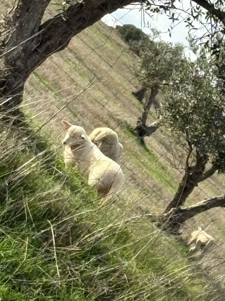 Terwijl we buiten aan het werk zijn horen we af en toe het geklingel van een bel. Dat betekent over het algemeen dat de schapen van buurman Manuel in de buurt zijn als ze hun ronde maken over het erf van Buuf Elly.