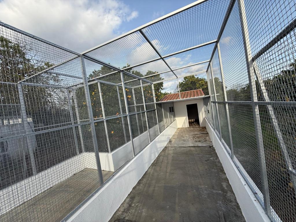 Overigens kwam Buuf Elly nog even langs voor een bakkie en die had laatst vrienden over die ook de volière in aanbouw zagen: zij vroegen zich af of we hier gingen tennissen… Het moet gezegd: de volière is flink van omvang….