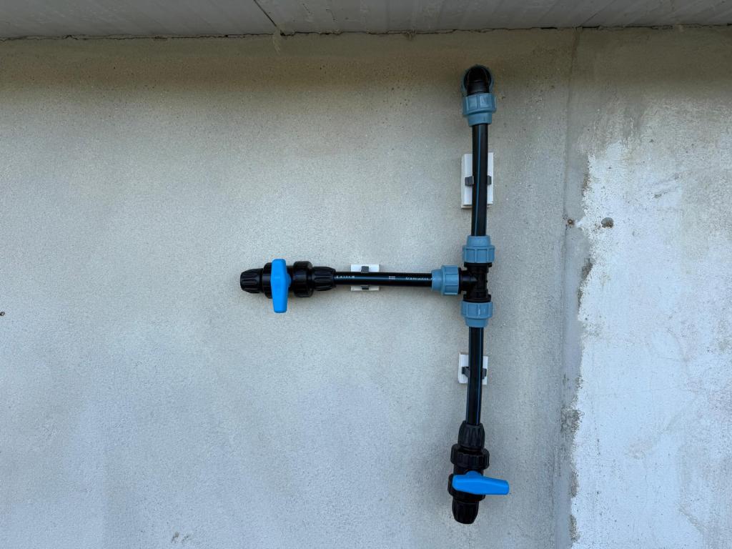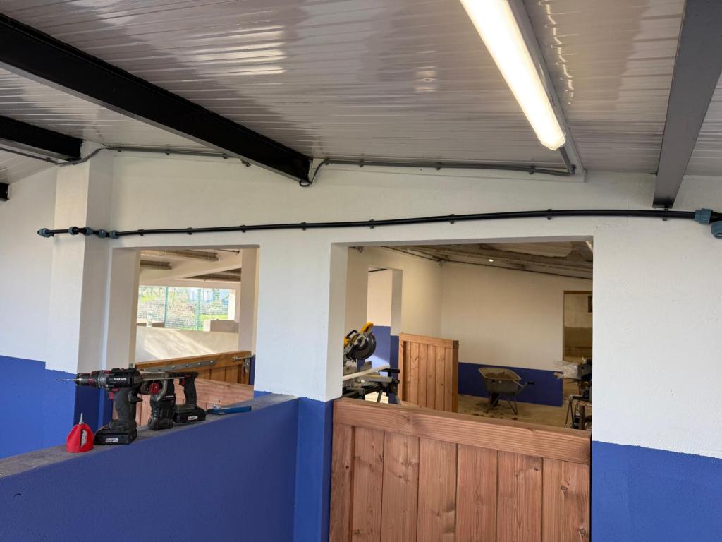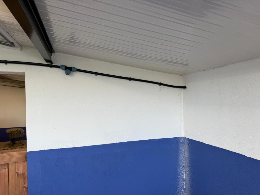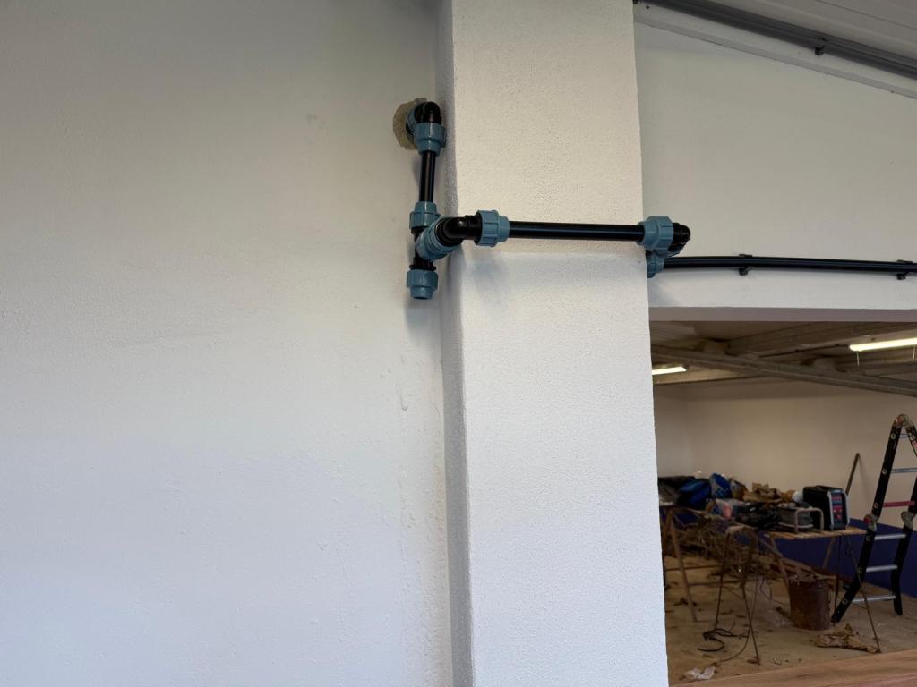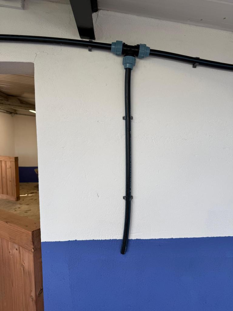 Rond half 2 ben ik, na het online werk in Nederland, weer verder gegaan aan de wateraansluiting in de stallen.In de 3e stal met een leiding uitstekend uit de muur was ik gisteren geëindigd. Vanaf dat punt dus verder de leiding opbouwen. Even een lastig punt om vanuit de muur eerst een stukje naar beneden te gaan voor de aftakking van de drinkbak en dan om de pilaar heen en boven de staldeuren lang naar de 4e stal om daar ook nog een aftakking te maken voor een drinkbak en dan door de muur naar buiten te gaan voor de aansluiting daar. Aan de buitenkant waar de bestrating is aangelegd maken we een waterpunt voor de wasplaats voor de paarden buiten en een punt om een tuinslag aan te koppelen. Altijd handig om daar water te hebben als je een keer de trekker wilt reinigen bijvoorbeeld. Rond 4 uur is dit klusje ook weer geklaard! Nada de Errado!