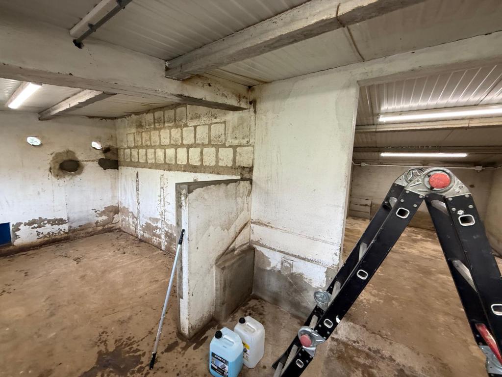 De ochtend was ik kwijt om de wanden van de stallen voor het kleinvee in de diepgrond te zetten. Dat ging redelijk snel. Eerst even opruimen en de vloer aanvegen en om 09:30 uur kon de kwast en de roller tegen de muur aan! Om 12:30 uur zaten de wanden in de diepgrond, nu eerst lunch!