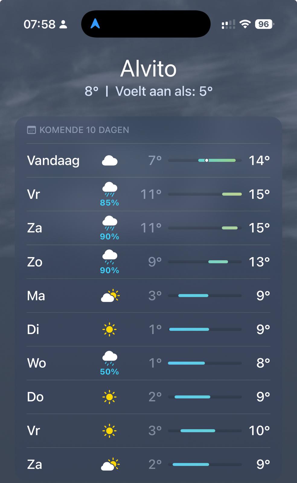 Deze week in Nederland is het koud, nat en mogelijk wit! Het grootste deel van de komende week vriest het ’s nachts dus dat betekent de komende week ’s ochtends de beesten handmatig van water voorzien! Dat in tegenstelling tot Portugal: het eerste deel van de week rond de 15 graden met kans op. regen, daarna kouder maar wel zonnig. Zowel ’s nachts als overdag liggen de temperaturen in Portugal tussen de 5 en 13 graden hoger dan in Nederland!