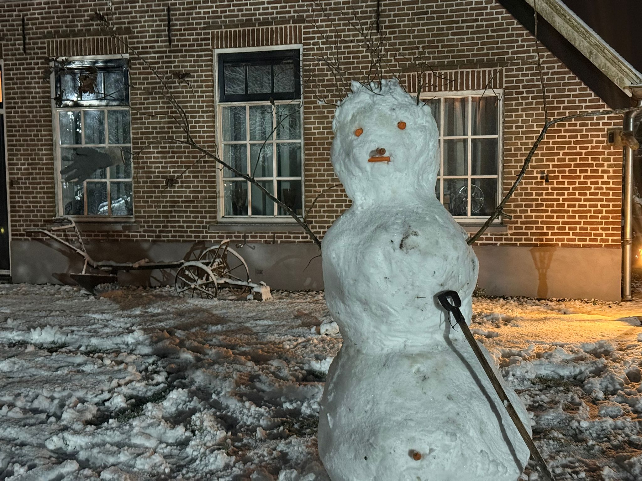 Daarnaast levert het natuurlijk ook mooie plaatjes, zowel overdag als in de avond. Zoonlief heeft met zijn vriendinnetje nog een behoorlijke sneeuwpop in de tuin gezet: dat duurt wel even voordat die weer ontdooit is…