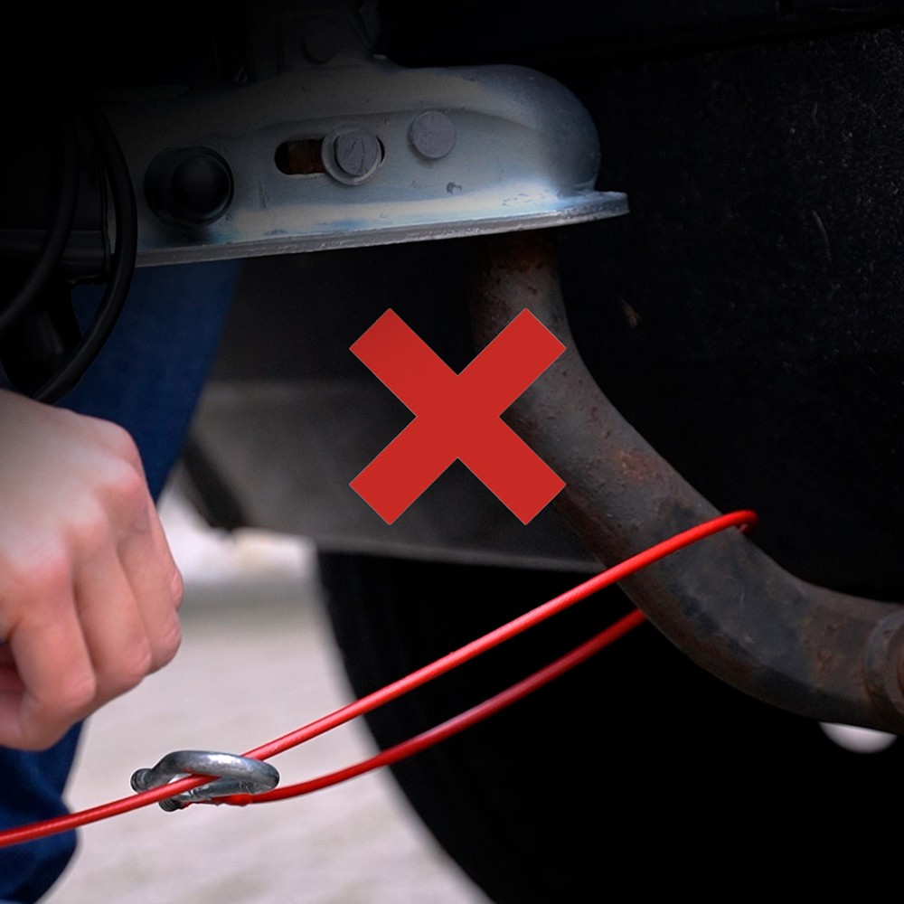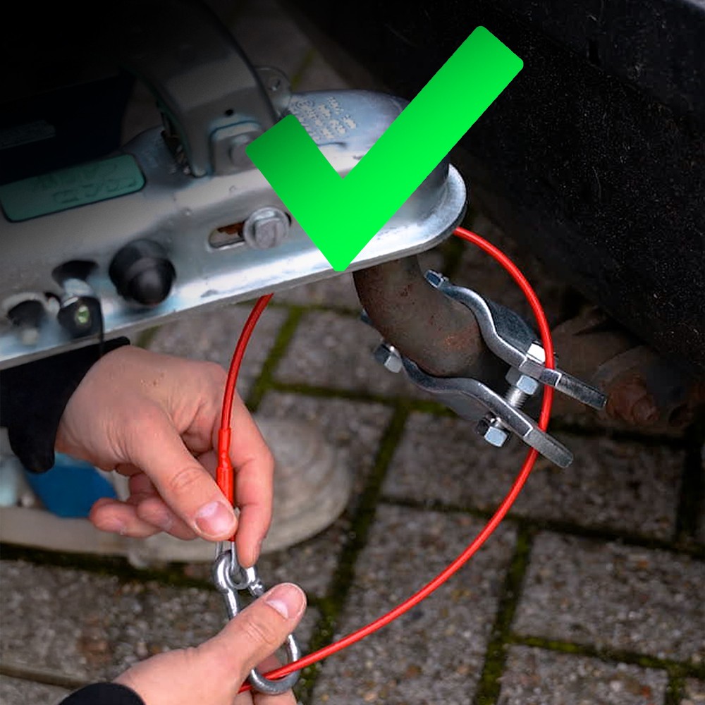 Hij ging theatraal bij de trekhaak staan en vroeg me “Wat is hier niet goed aan?”. Ik had hem net gevraagd waarom ik staande werd gehouden en dus geen idee had waarom en zei hem “Dat ga je me nu vertellen!”. Wat bleek? De remkabel van de reminrichting van de trailer zat niet goed bevestigd: ik had ‘m rond de trekhaak gebonden en vastgemaakt maar dat mocht dus niet: de kabel kon wel eens over de trekhaak heen loskomen! De kabel moest direct aan een niet-zichtbaar oog onder de trekhaak vastgemaakt worden…