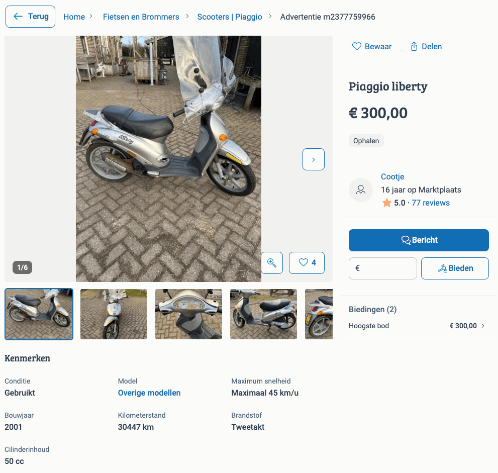In het kader van het opruimen van de spullen stond deze week ook de scooter van onszelf te koop. Dit is echt een stukje nostalgie: de scooter is uit 2001 en dus 25 jaar oud. De bedoeling was dat mijn vrouw er destijds mee naar haar werk zou gaan, echter toen was daar ineens zoonlief op komst. De brommer is in de schuur beland en toen zoonlief 16 werd hebben we ‘m weer rijdend gemaakt.