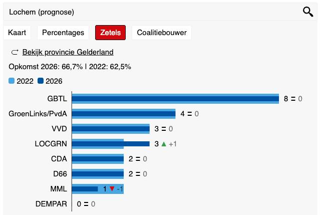 Even serieus nu: zoals vorige week al aangegeven kwam onze stemwijzer uit op Gemeentebelangen en die hebben we dan ook gevolgd door op Buuf Sietske te stemmen! En wat bleek: Gemeentebelangen blijft de grootste partij in de gemeente Lochem met 8 zetels. De combinatie GroenLinks/PvdA deed de vorige keer nog niet mee als combinatie en nu wel en bleef qua zetels gelijk maar doordat de partijen nu als 1 partij hebben meegedaan zijn ze de 2e partij geworden. Voor de hand ligt dan ook dat er een coalitie zou kunnen gaan komen van Gemeentebelangen en GroenLinks/PvdA.