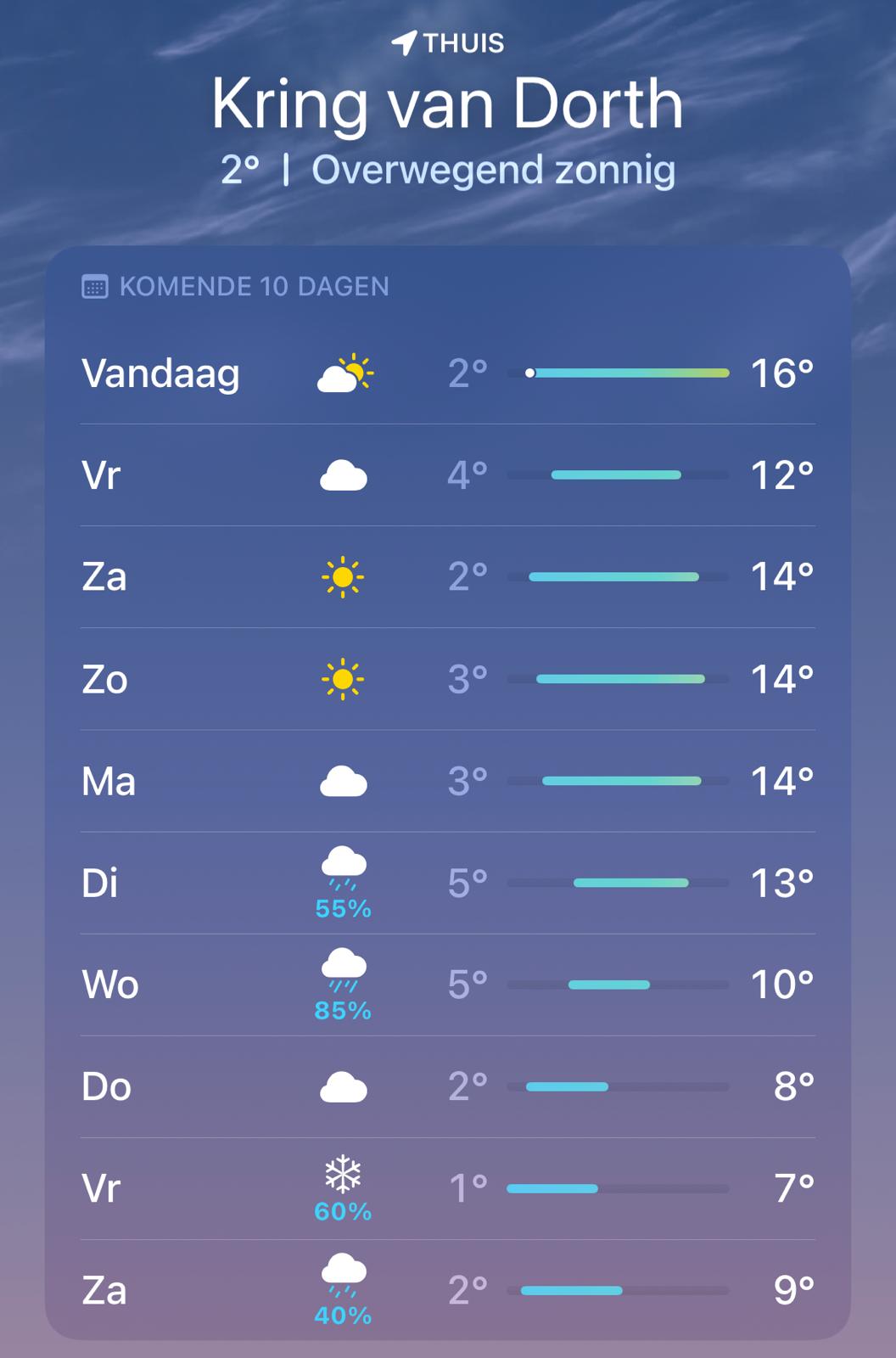 Komende week is het weer in Nederland en Portugal behoorlijk verschillend. In Nederland een zonnig weekend maar regen en wellicht zelfs sneeuw volgende week. In Portugal juist een regenachtig weekend met een storm langs de kust maar met temperaturen die begin volgende week weer naar de 22 graden gaan! Heerlijk voorjaarsweer met temperaturen tot 14 graden warmer dan hier in Nederland. Nog 4 weken tot de volgende trip en het weer wordt steeds aangenamer!