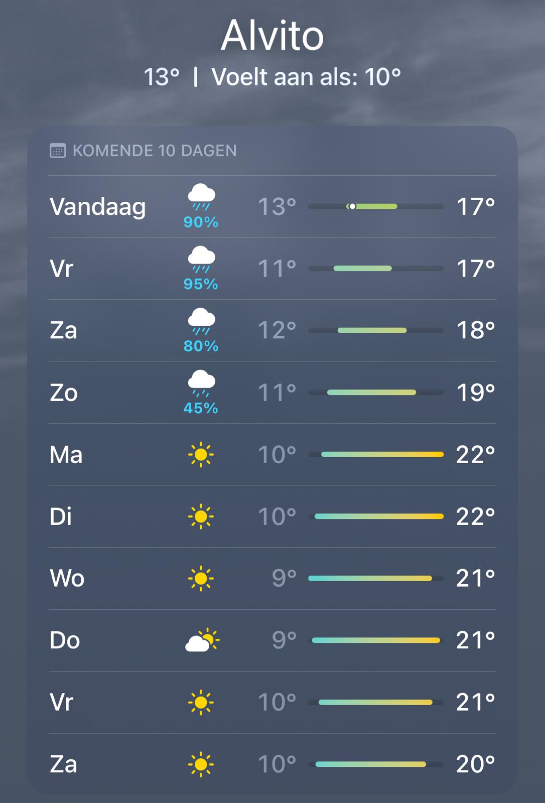 Deze week in “Het schuifje van Janneke”, ofwel in traditioneel Portugees “O controle deslizante de Janneke”, leggen we het weerbeeld van Alvito weer naast dat van hier in Nederland.