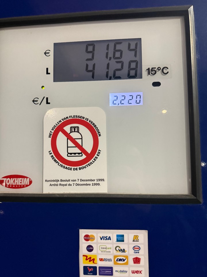 Zoals vorige keer aangegeven loont het om strategisch te tanken, dat kan oplopen tot een prijsverschil van € 0,40 per liter diesel.