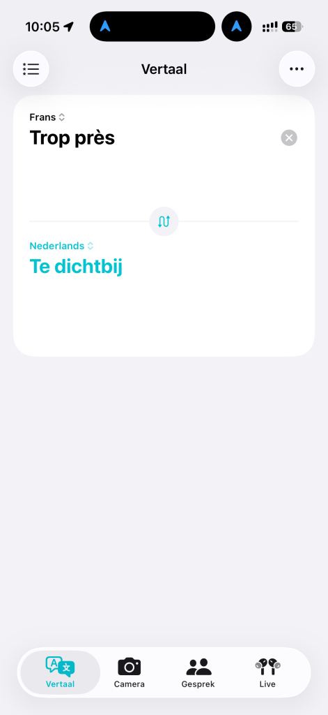 Vervolgens kwam ik onderweg van Parijs naar Tours op de A10 een matrixbord tegen met ons kenteken en de melding “Trop près”. Ja hallo, ik kan wel een beetje Frans (baguette, Porte-monnaie, etui de la pipe), maar dt gaat mijn talenknobbel te boven.