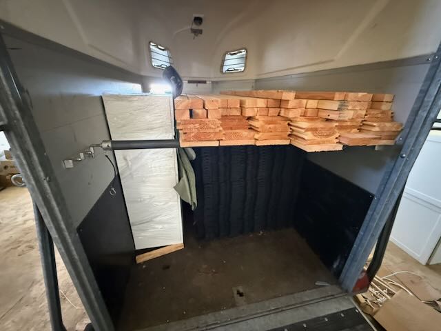 Nou, na 2 gebroken nachten moest papa even bijkomen, hij is geen 20 meer! (trouwens ook geen 30, 40 of 50…) . Ik heb me vandaag beperkt tot even kijken hoe alles er bij staat en ’s middags heb ik de trailer leeg gemaakt, op de spullen na die naar de stallen moeten: dat doe ik morgen en dan rij ik de trailer bij de stallen en laad daar uit. Het hout voor de kleindierverblijven en zadelkamer af te timmeren plaats ik daar binnen en de rubberen tegels plaats ik gelijk in de stallen: dan heb ik het maar 1 keer beet! Dat scheelt een hoop werk!