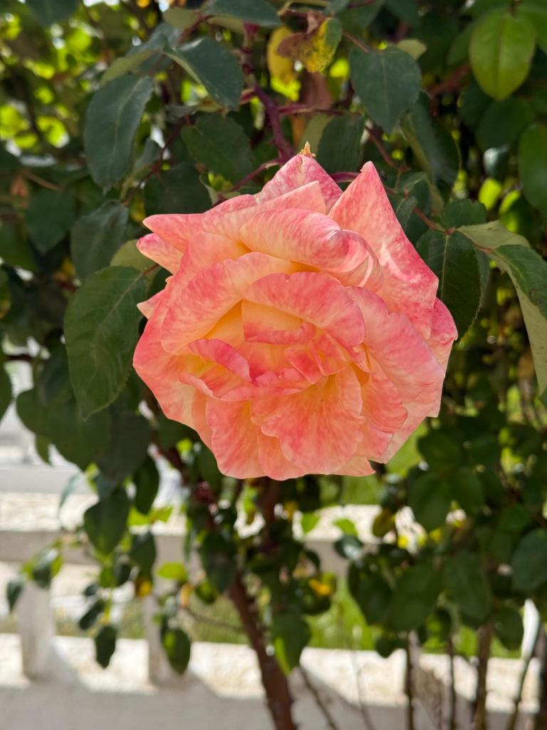 Ook de rozen doen het goed: hoewel niet gesnoeid of dat ze bijzondere aandacht gekregen hebben bloeit het allemaal! Dat ziet er gelijk heel gezellig uit!