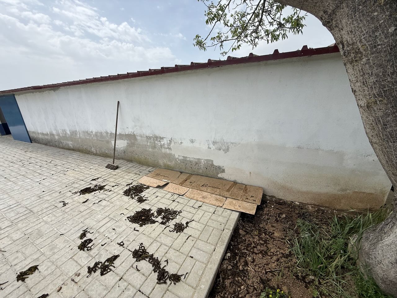 Op de foto’s van de voorkant is ook nog een oud, ondiep, waterbassin te zien. Dat gaan we opknappen als we er gaan wonen. Opknappen betekent dan schoonmaken, waterdicht maken door de binnenkant te bewerken met een waterdichte coating die ook gebruikt wordt bij reparaties van platte daken. Een dergelijke siliconen coating is blijvend elastisch en supersterk. Voorbeeld is de Soudal Lekstop.