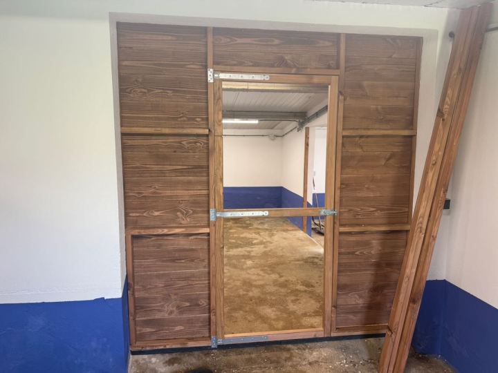 Morgen verder met de laatste deur en dan monteren we de sponningsplanken er op! Daarnaast gaan we kijken hoe ver we komen met het aanbrengen van planken aan de muur voor opbergen van klein materiaal