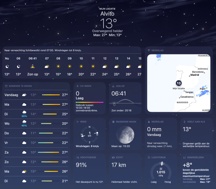 Deze week in “Het schuifje van Janneke”, ofwel in traditioneel Portugees “O controle deslizante de Janneke”, een keer geen “schuifje” maar alleen het beeld van het weer in Alvito van vandaag, morgen en de rest van de week.