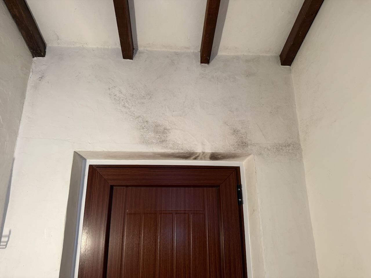 Onze 3 aangebrachte muurventilatoren konden dit niet verwerken. Belangrijkste is echter dat er niet gestookt is: daarmee creëer je een binnentemperatuur waarin schimmels het goed doen.