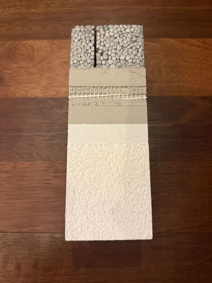 De leverancier had 2 stalen meegenomen hoe de oplossing om na-isolatie van de woning aan de buitenkant te kunnen toepassen.