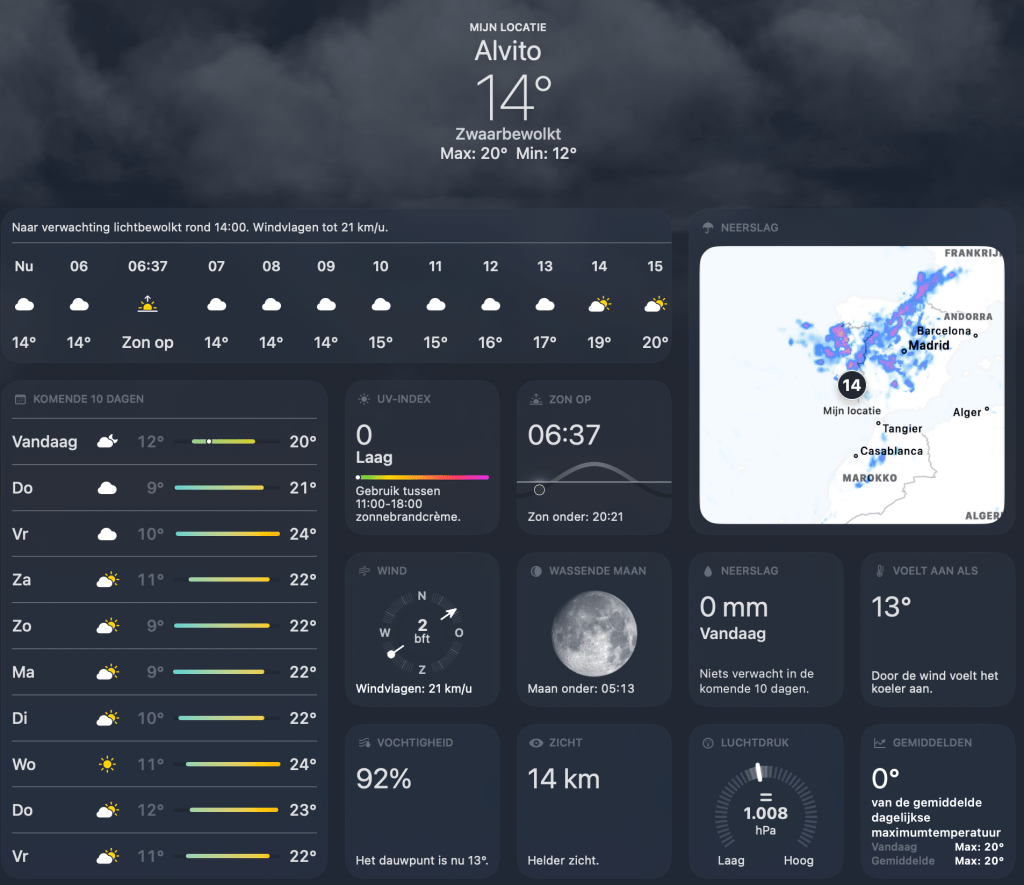 Deze week in “Het schuifje van Janneke”, ofwel in traditioneel Portugees “O controle deslizante de Janneke”, een keer geen “schuifje” maar alleen het beeld van het weer in Alvito van vandaag, morgen en de rest van de week.